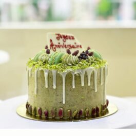 gateau anniversaire pistache ou noisette Deluxe – une creation gourmande et elegante avec un parfum au choix selon votre preference.