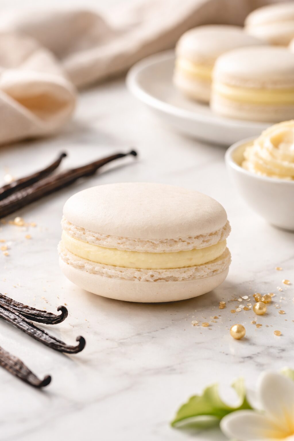Macaron Vanille – Coque Croquante & Ganache Fondante