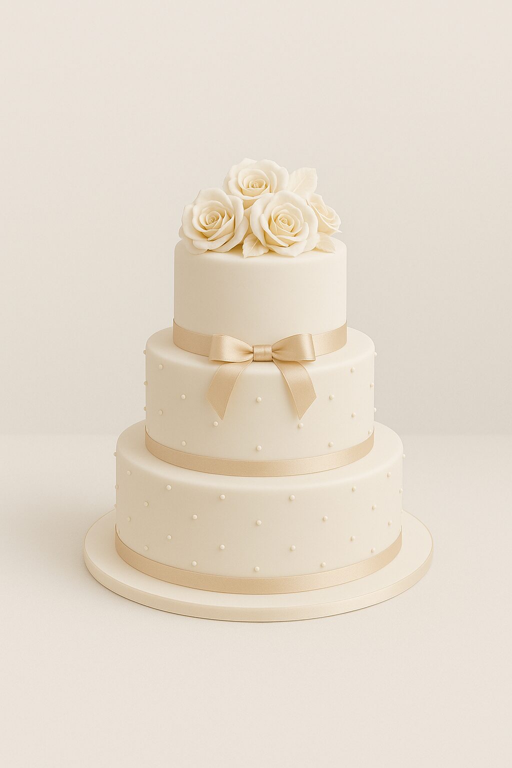 Ce piece montee prestige est une véritable pièce maîtresse. Conçu pour sublimer la table des mariés, il allie raffinement et pureté avec ses roses ivoire en sucre, ses rubans satinés délicats et ses perles comestibles finement disposées. Son design classique et sophistiqué en fait un choix idéal pour un mariage élégant et mémorable.